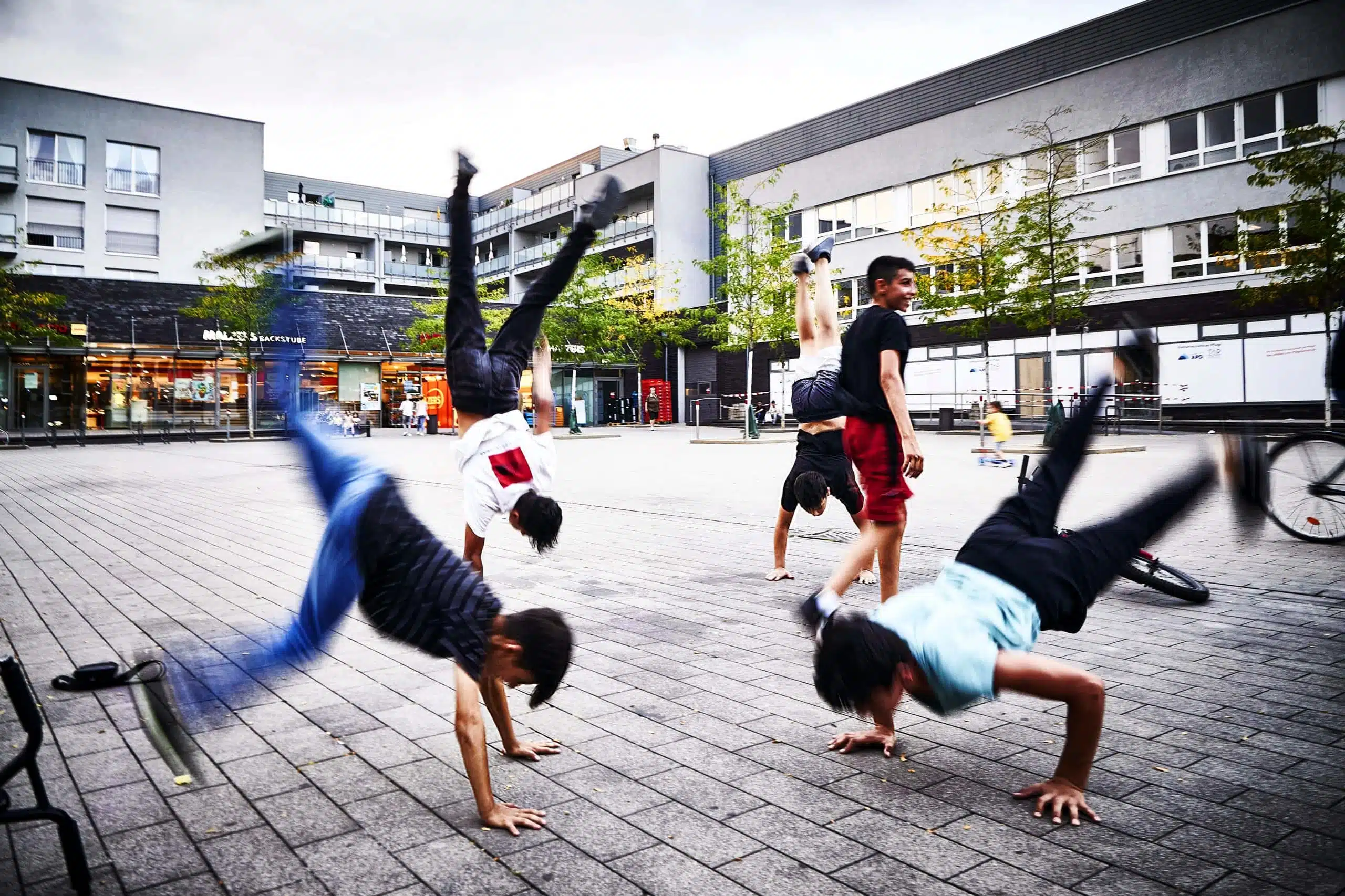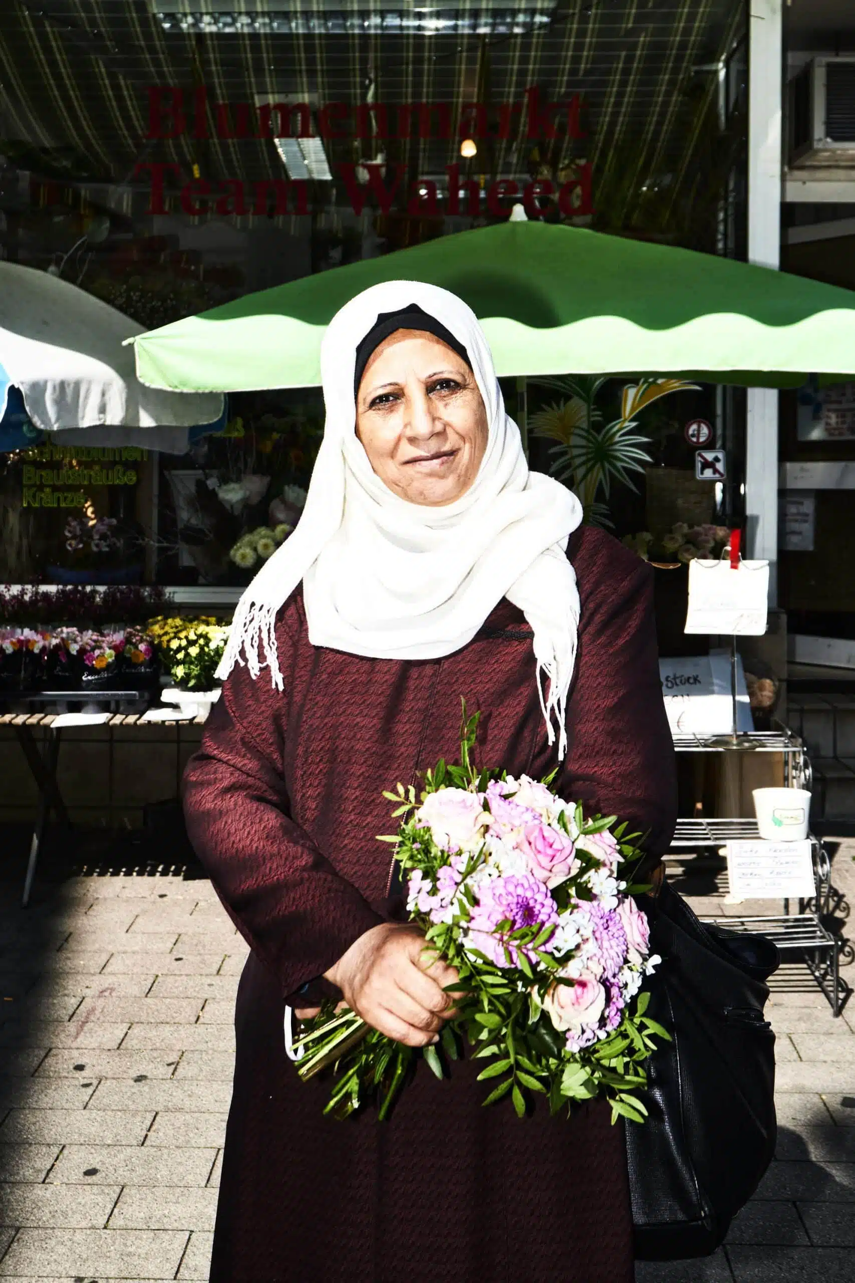 Ich treibe mich also ein bisschen da rum und habe den Eindruck, an einem multikulturellen Ort zu sein, an dem ich obendrein willkommen bin. Es gibt den Barbier, den Dönerladen, es gibt die Kneipe „Zum Platzhirsch“ und den gefürchteten „Traber“. Ich atme den Hauch Arabiens bei Misk, einem irakischen Laden, der Kaffee, Düfte, Kleidung und vieles mehr anbietet. Ich lerne nach dem achten arabischen Kaffee, dass es höflich ist, die Tasse schüttelt, anstatt mit Worten abzulehnen, wenn man keinen Kaffee mehr möchte. Bei Waheed treffe ich eine muslimische Frau, die unbedingt mit einem Blumenstrauss fotografiert werden will. Auf dem Marktplatz wiederum habe ich die Ehre, dass Muhammad und seine Kumpels eigens für mich akrobatische Performances geben.